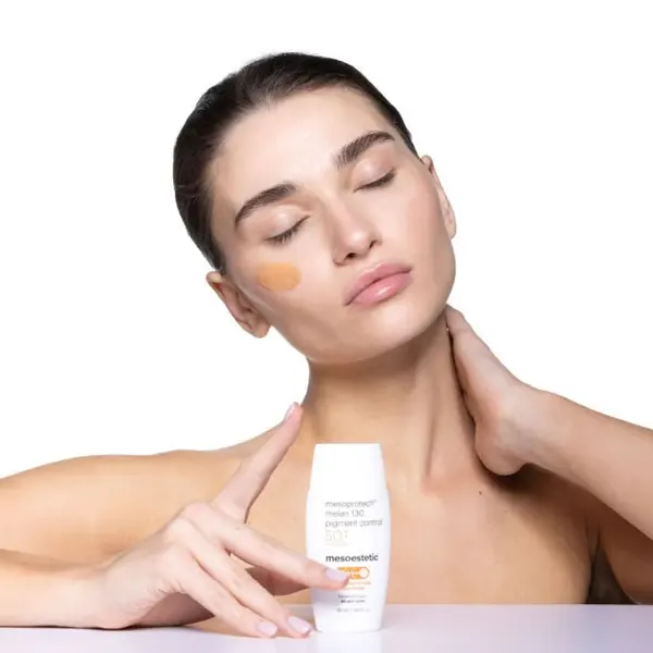 Melan 130 Mesoestetic es un protector solar facial con color de muy alta protección diseñado para pieles con manchas o tendencia a la hiperpigmentación.