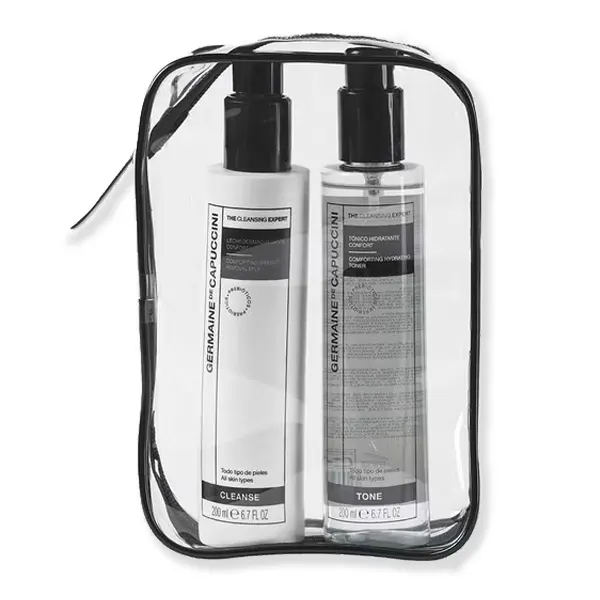 Pack Confort The Cleansing Expert Germaine de Capuccini, dúo de limpieza que combina la eficacia desmaquillante de la Leche Desmaquillante Confort con la acción equilibrante del Tónico Hidratante Confort para ofrecer una rutina 360° que cuida la piel desde el primer gesto.